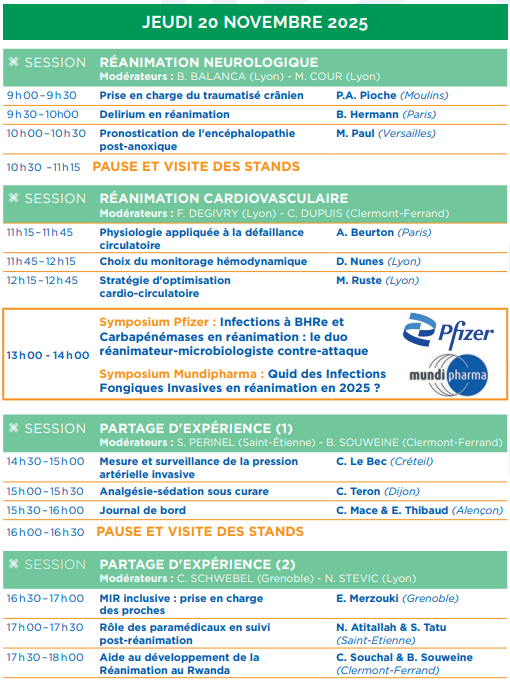 Toxicité médicamenteuse – Nouveaux antibiotiques – Encéphalites – Nutrition – Arrêt cardiaque – Coagulopathie – Médicaments & Réanimation – Echographie – SDRA – Intubation trachéale – Fin de vie – Partage d’expériences paramédicales